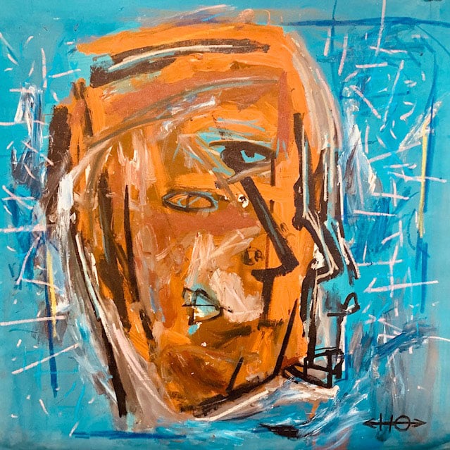 À travers ses toiles, Harouna explore l’humain dans sa dimension la plus universelle : visages imaginés, silhouettes suspendues, couleurs vibrantes, rythmes organiques.