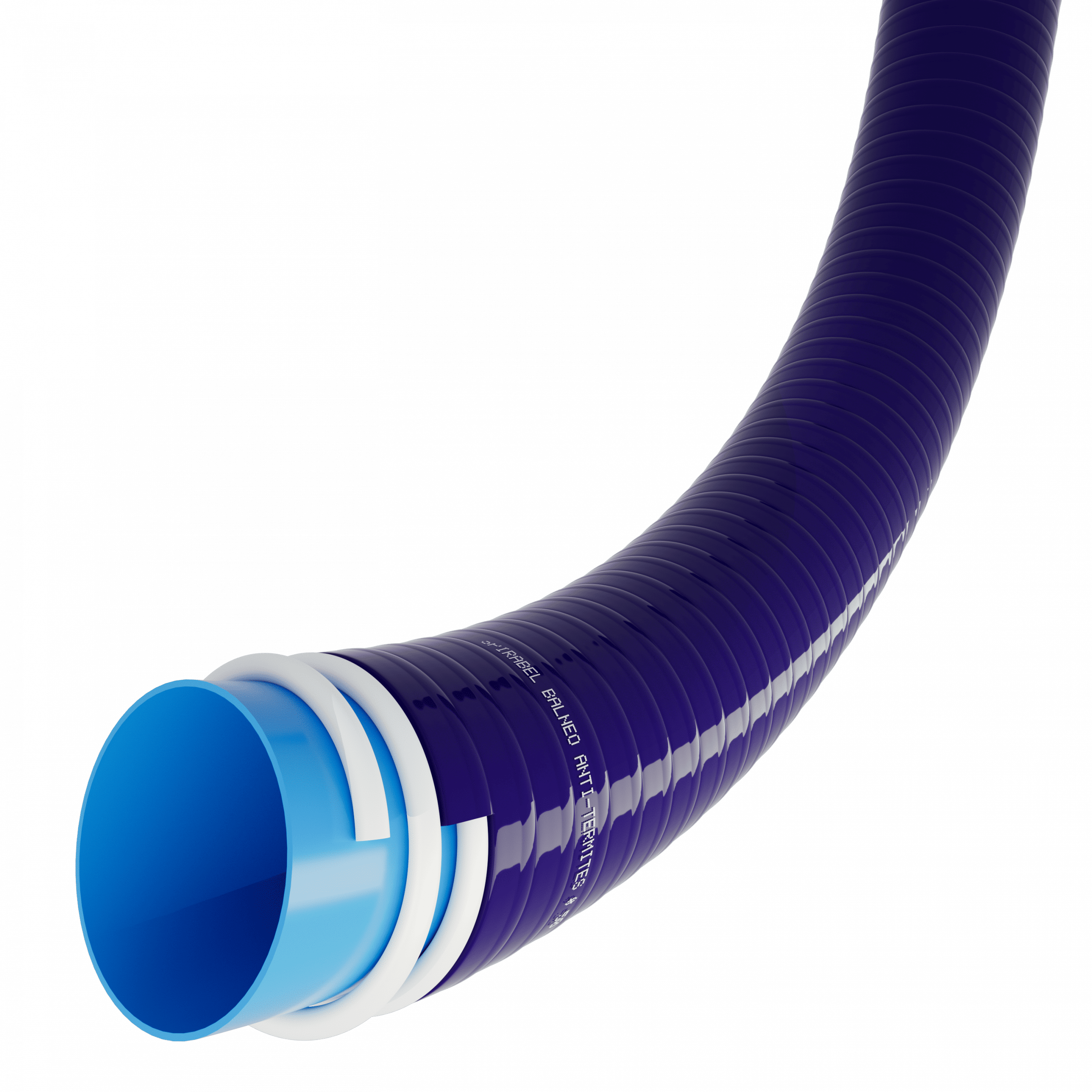 • Tuyau PVC spiralé avec jonc en PVC rigide anti-choc + paroi en PVC souple anti-termites