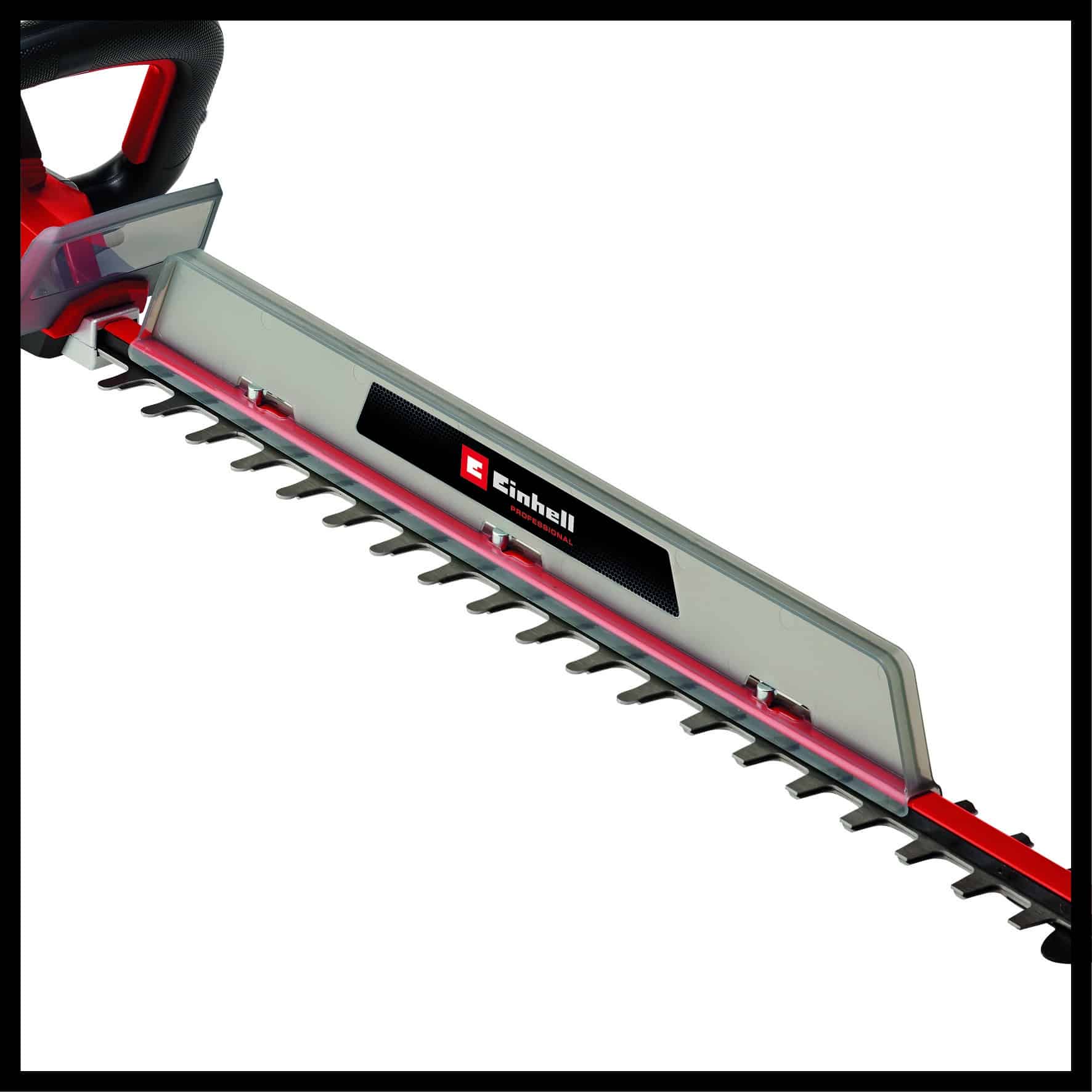 Einhell commercialise son nouveau taille-haies sans fil GP-CH 18/61 Li-BL-Solo avec un fourreau de protection pour éviter tous risques de blessure et d’endommagement des lames lors du transport et du stockage de l’outil.